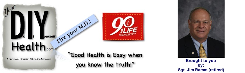 Sgt. JIm Ramm (retired) • www.YourDIYHealth.com • ℅ 5195 Hampsted Village Center Way #141 • New Albany, Ohio [43054] • 614.855.2854 ©2013 YourDIYHealth All Rights Reserved *Notice ~ The statements made on this newsletter have not been evaluated by the FDA. The products recommended and the information provided are not intended to diagnose, treat, cure, or prevent any disease. As a responsible human being it is important that you do your own due diligence. You alone are responsible for how you choose to use the information presented here.